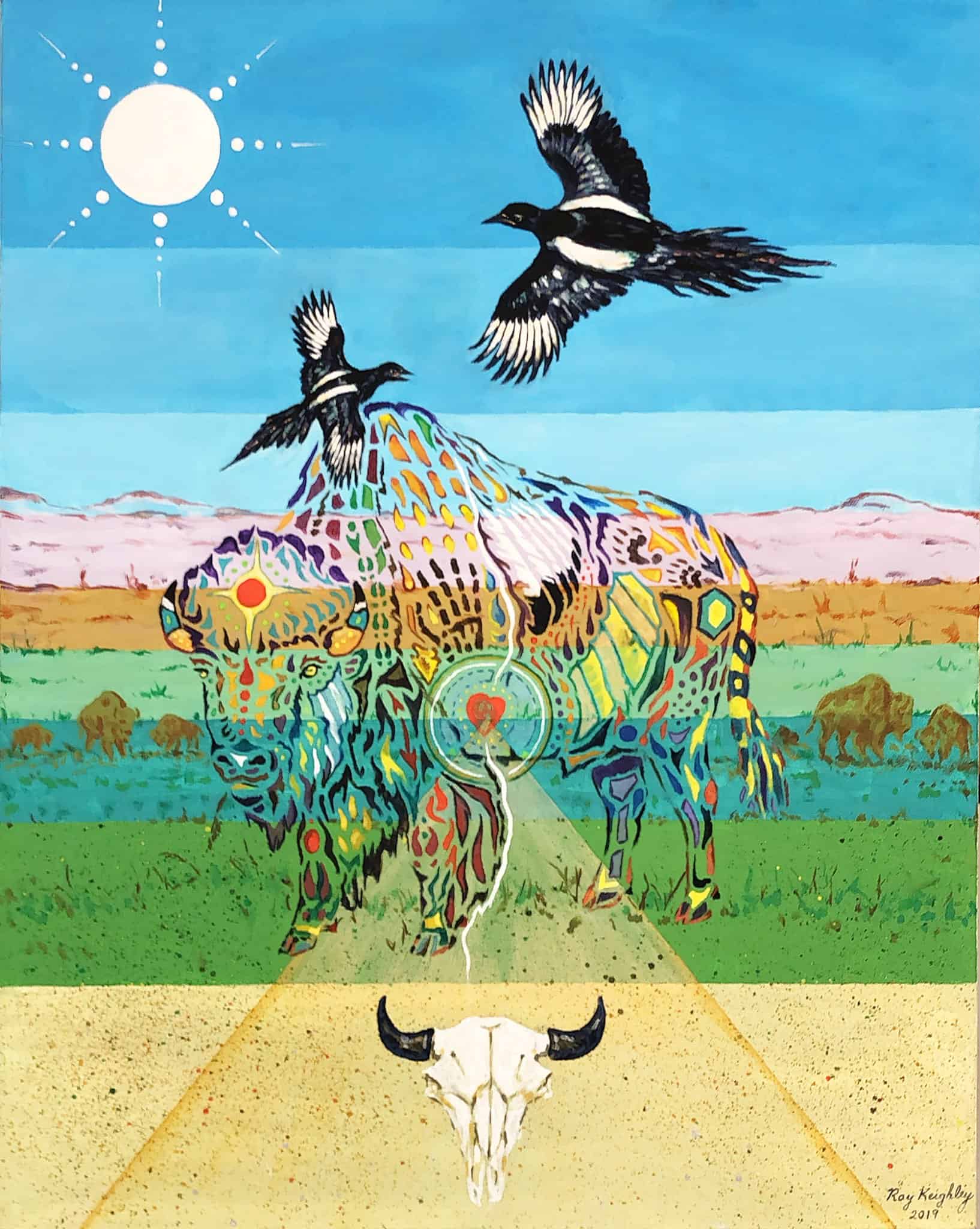 Ray is a Cree/Metis artist who was born and raised in the foothills of Alberta and who has family roots on the Sucker River Reserve north of Lac La Ronge, Saskatchewan.